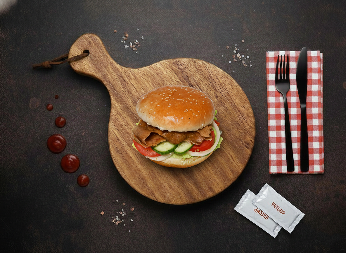 Samion’s Donner Burger combines tender donner meat with fresh vegetables and sauces on a soft bun, giving a rich and satisfying flavor. The juicy meat and crisp salad make it a perfect burger option for lovers of savory taste.