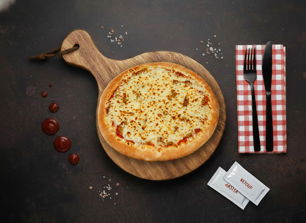Samion’s Donner Pizza is loaded with tender donner meat, onions, mushrooms, bell peppers, and melted cheese on a golden crispy base. The combination of savory meat and fresh vegetables creates a rich and satisfying flavor.