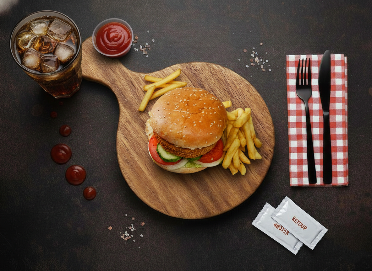 Samion’s Fillet Burger features a tender fillet of chicken or fish on a soft bun with fresh vegetables and sauces. It is juicy, lightly seasoned, and perfectly balanced with crispy salad for a delicious bite.