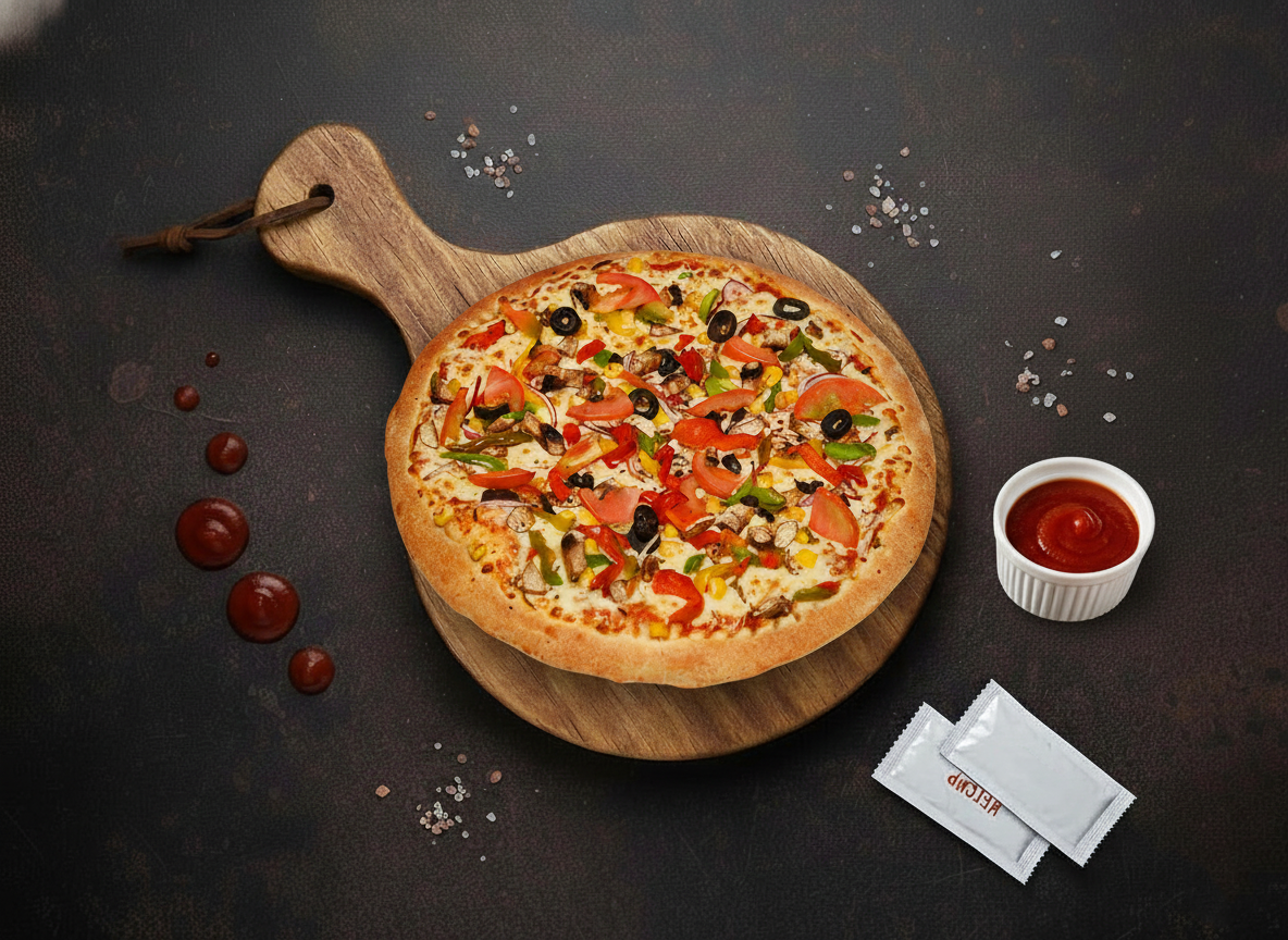 For extra taste and mild heat, toppings such as jalapenos, pickle jalapenos, green chillies, black pepper, oregano, chilli seeds, garlic butter, and green peppers are added, creating a flavour-packed vegetarian feast in every bite.